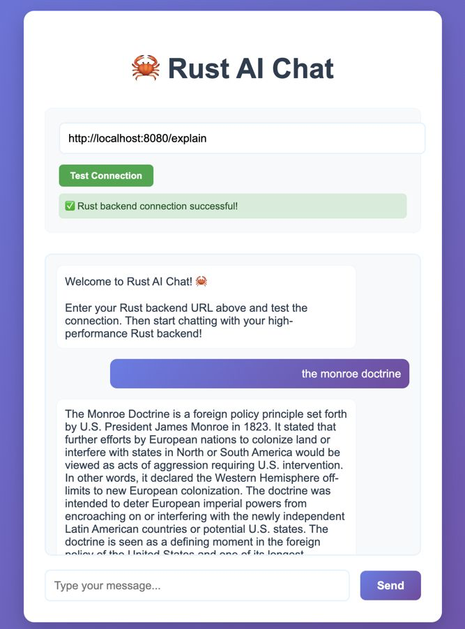 And then, because I’m cursed, I thought…since I’m not writing ANY OF THE CODE MYSELF because the LLM is…what if I tried writing the Backend in RUST? And wouldn’t you know it…I had a ChatGPT clone with an HTML CSS JS Frontend and a Rust Backend. Can you see the ascot I’m wearing around my neck?