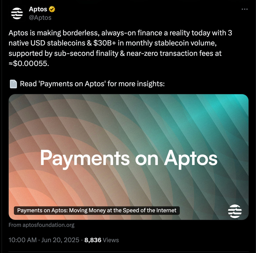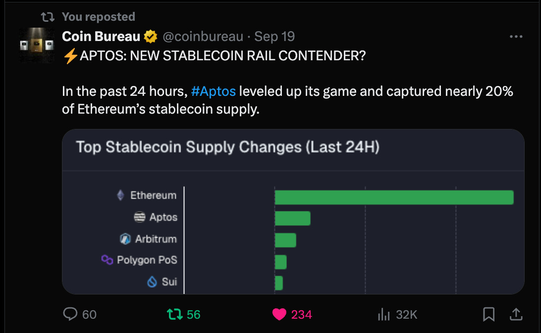 Today, after receiving $300M+ from the likes of a16z, Multicoin and friends, Aptos is not only a force in the real-world asset space but also the astronomically-profitable stablecoin space.