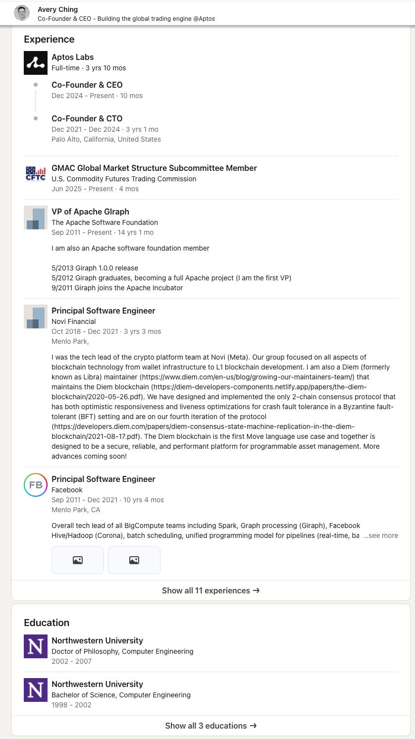 And it doesn’t just end there. The popular OP_CAT Proposal on Bitcoin? That’s Xiohui Lui, fmr. Meta.