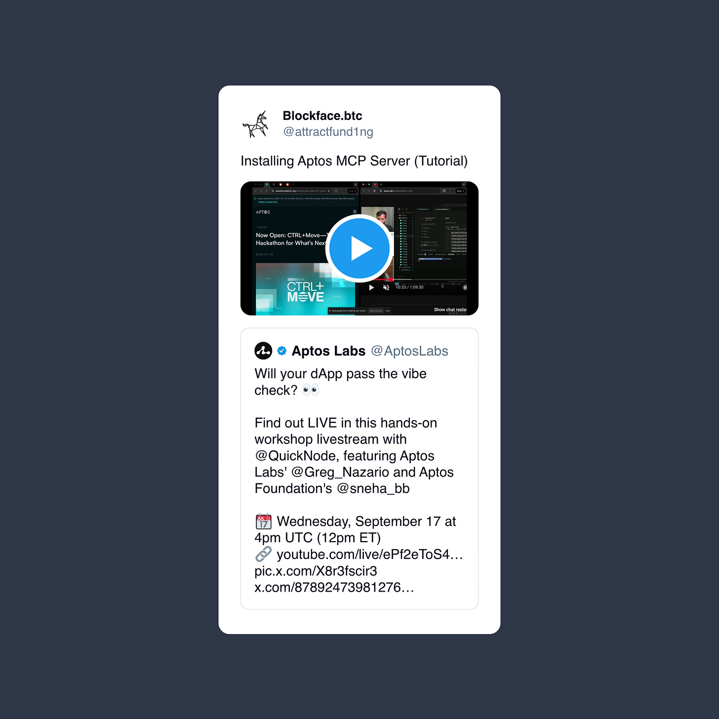 The Aptos Blockchain, built by former Meta engineers behind Diem/Libra and powered by the Move smart contract language, has embraced MCP. By doing so, it enables developers to “vibe code” smart contracts with AI assistants that always have the latest references.