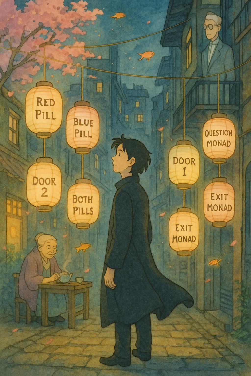 In this analogy, Haskell monads serve as immutable containers for context, sequencing effects through bind and return. Neo’s role parallels The Function that changes the effects inside that context—without ever touching the monad’s core definition.